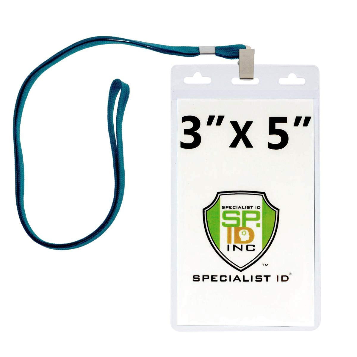 . REGULAR ID BADGE:Black Faux Leather ID Badge Card Holder - Vertical (Top Loading) with Slot at top for lanyard Fastening Strap Easily show your badge with the generous 2-inch x 3.5-inch clear window Maintain a professional look with these clear front Black Leather Name Badge Holders Works great for your ID Badge, RN Nurse Badges, School ID, Bus Pass, Employee Badge, Security Identification. 10 Pcs Vertical ID Badge Holders PVC Clear Sealable Waterproof Plastic Protector Holder Name Tags Badge Holders